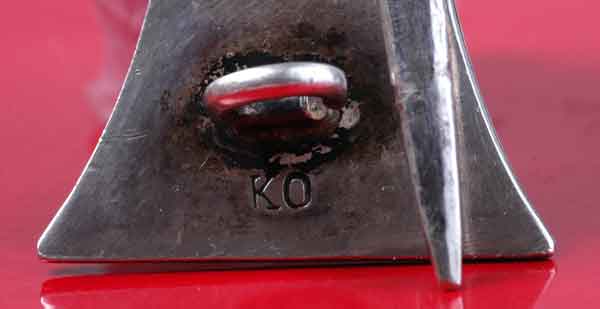 1914 EK1: Three peice construction, unmarked solid silver frame, painted iron cross, 43x43 mm, 15.9 gm, hallmarked KO (Königliches Münzamt Orden Berlin), moderate wear.