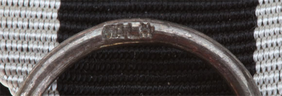 WW1 EK2: Quality 3 pc construction, full paint, silver plated frame, magnetic core, 43 x 43 mm, ring marked "WILM" (H.R. Wilm, Berlin), 15 cm ribbon, light wear.