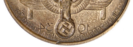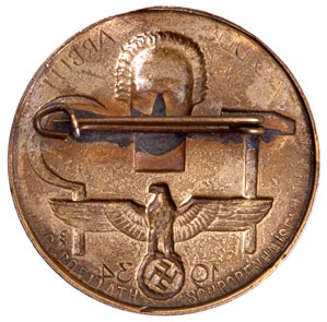 Stamped Brass, 35 mm, soldered pin, maker: C. Poellath Schroebenhausen, light wear.