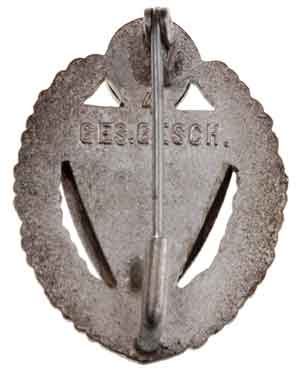 25 Yr. NSRKB - Nationalsozialistische Reichskriegerbund: National Socialist Reich War Veterans League: based on the DKB (Deutscher Kriegerbund) from the 1870s. By 1938 it incorporated all of the varied veterans associations into it and was re-named the Nationalsozialistische-Reichskriegerbund. Enameled and silver plated tombac, 28 x 20 mm, marked "4 Ges. Gesch.," light to moderate wear.
