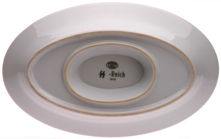 1938 SS Mess Hall Porcelain Gravy Boat: by "Bauscher Weiden," 24x15 cm plate, 22x10 cm boat, virtually mint condition.
