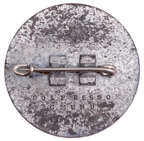 Zinc, 35 mm, steel pin, marked "Adolf Besson Gmund," moderate wear.