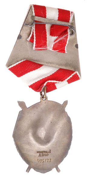 1950's USSR Order of the Red Banner: Instituted on August 1, 1924. Awarded for bravery and courage displayed in the defence of the socialist Homeland. SOLID SILVER with goldplating and enamel, serial # 405177, circa early 1950's, light wear.