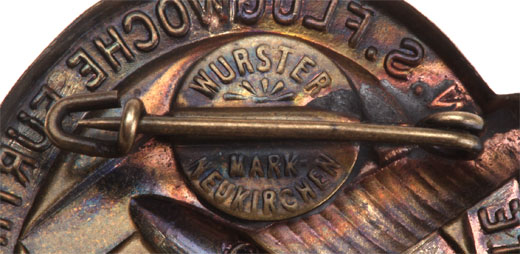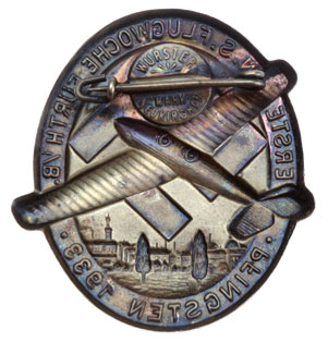 Erste NSFK Flugwoche Furth im Berg Pfingsten 1933: Tombac, 38 x 42 mm, pin plate marked: Wurster Mark Neukirchen, light wear, nice toning.