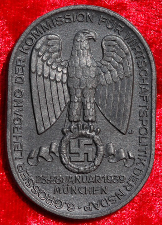 6. Grosser Lehrgang der Kommission fur Wirtschaftspolitik der NSDAP (The 6th Greater Training Course of the Commission for Economic Policy of the NSDAP): This has to be a really rare badge - probably only one to two thousand were made. Feinzink, crimped steel pin, light wear.