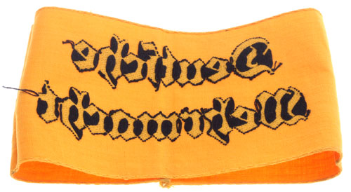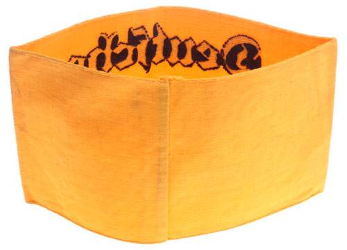 Deutsche Wehrmacht Armelbinde: heavy yellow cloth body, bevo black letters, 10.5 x 36 cm, unissued, a beauty, mint condition.