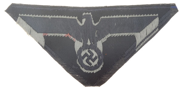 Army Panzer EM Tunic Eagle: grey bevo 100x40 mm eagle, black rayon strip 120x55 mm, a few threads have pink spots, unissued, virtually mint condition.
