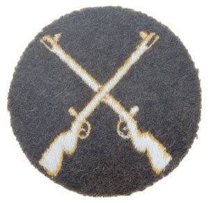 Unterwaffenmeister Patch: 55 mm, olive green wool disk, gold machine embroidered threads, mint unissued.