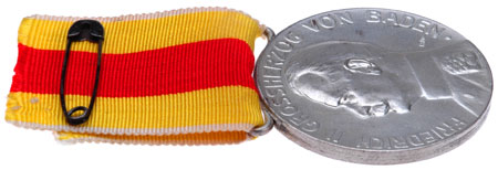 Baden Karl Friederich Verdienst Medaille: Silver plated steel, 38 mm, original ribbon, pin, and envelope, light wear.