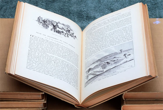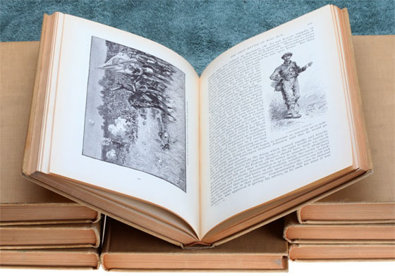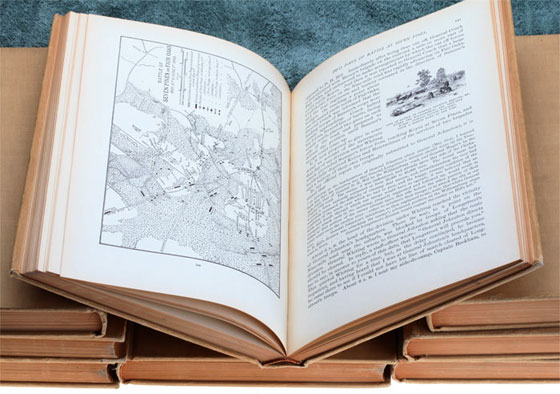 Battles and Leaders of the Civil War: Beige cloth hardcover, top edge of pages in gold, small owners bookplate on frontpage, Publisher: The Century Co., complete set of 8 Volumes, copyright 1884, 1887, 1888; bookstamp St. Francis Seminary, Salzman Library; approx 3000 pages of text, hundreds of illustrations from photos, battlefield sketches, and maps; the in depth coverage of every significant battle is astounding, very light wear because this set sat almost unread on the shelf of a Religious College Library for over one hundered years! One of the best reference books on the US Civil War, rare, printed on high quality low acid paper, overall light wear.