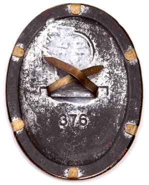 DAF Hat Badge: A nice multi piece oval badge, 55 x 40 mm, gilt brass oval, stamped steel back, gold on black rayon machine woven insignia, brass tabs and prongs, marked "RZM 376," moderate wear.