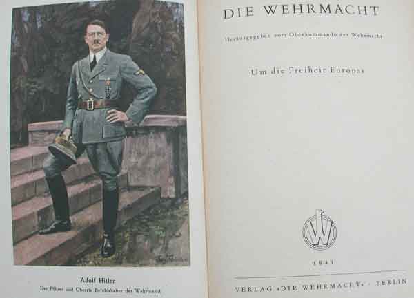 The Armed Forces 1941, On the Freedom of Europe, by the High Command of the Wehrmacht, Karl Fischer, 320 pages, no DJ, with numerous photos, drawings, and maps. Many stories and personal accounts of soldiers in battle, mainly on the eastern front in Russia. Very good condition.