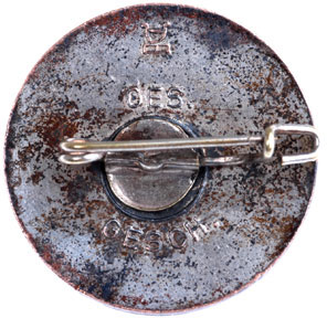 Worn by members of the Deutsches Siedlerbund (German Settler Federation), an organisation founded in 1933 and still in existence today. Less than 32,000 such badges were manufactured prior to 1945. Enameled tombac, 24 mm, plated brass pin secured by a soldered plate, marked HA for Hermann Aurich, Ges. Gesch., scarce, light wear.
