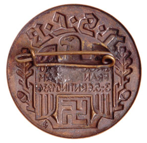 1934 NSLB: Stamped tombac, 36 mm, soldered brass pin, scarce, light wear.