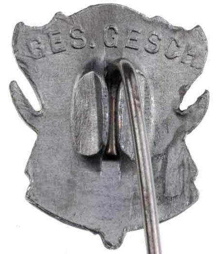 Aluminum, 15 x 8 mm, 50 mm knurled pin, marked Ges. Gesch., very light wear.