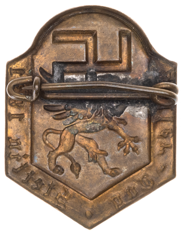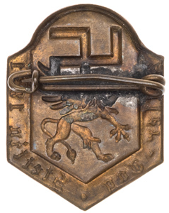 Hitler Tag Stettin 1931: 24 x 31 mm, tombac, large swastika above Stettin griffin, sharply defined gothic script along the borders reads "Hitler - Tag Stettin 1931"