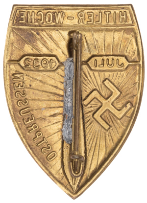 HITLER-WOCHE JULI 1932 OSTPREUSSEN: Hitler-Woche (Hitler Week) was a regional propaganda campaign held in East Prussia (Ostpreußen) in July 1932, during the final political struggles of the Weimar Republic. The NSDAP used localized weeks like this to stage rallies, speeches, parades, and fundraising events to mobilize party members and sway undecided citizens. 32 x 44 mm, near mint