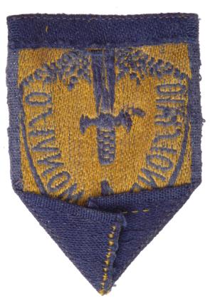 Divisione 4 Monviso: Machine embroidered, gold on blue cloth, 72x50 mm, light wear.