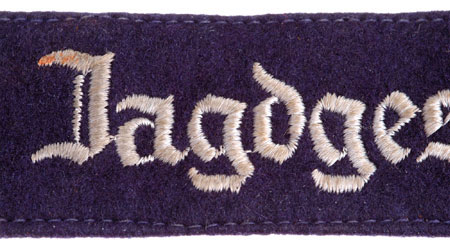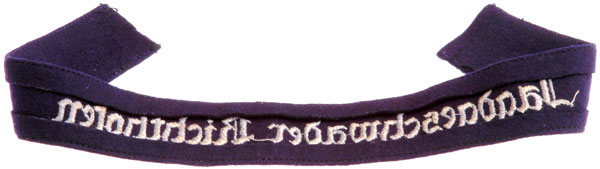 The Jagdgeschwader Richthofen (Fighter Wing Richtofen) was one of a number of commemorative cufftitles introduced by the Luftwaffe to honor famous hero pilots of WWI. The Richthofen cufftitle was introduced in April 1935 for wear by members of Flyer Group Döberitz who served with Richthofen in WWI. Six months later on October 29 1935 the Jagdgeschwader Richthofen cufftitle was replaced by a new version titled Jagdgeschwader Frhr. v. Richthofen Nr. 1 1917/18.