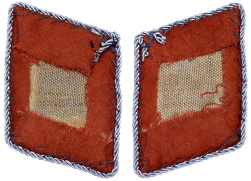 Luftwaffe Signal Collartabs: Light brown wool base over buckram, 40 x 55 mm, aluminum bullion piping and design, end of piping needs to be sewn down to backing, light wear.