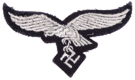Grey wool base, twill backing, 90 x 50 mm, light grey thread machine embroidered eagle, loose threads show it was removed from a tunic, moderate wear.