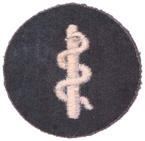 Sanitatspersonal Patch: Silver grey embroidered insignia on a 55 mm grey wool disk with a green cloth backing, unissued, light wear.