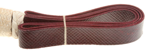 Faustriemen, Mounted Men, 1st Batterie 1st Abteilung: Checkered maroon leather strap, white leather slide, white crown and tassle, original factory string, absolutely mint unissued condition.