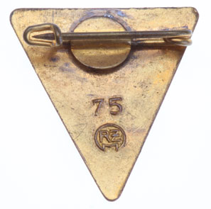 Nat. Soz. Frauenschaft GHL: The letters GHL signify the Frauenschaft motto, "Glaube, Hoffnung, Liebe" (Faith, Hope, Love). Enameled tomback, 25 x 30 x 30 mm, plated brass pin, RZM 75 (Otto Schickle, Pforzheim), light wear.