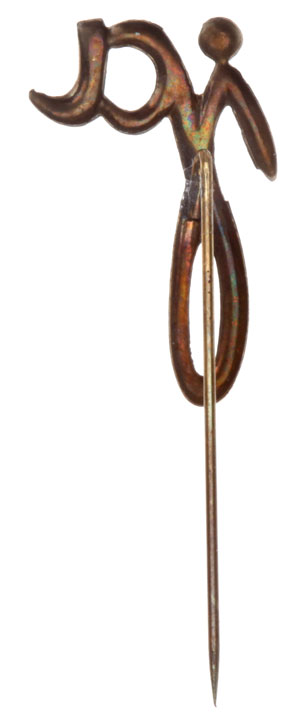 "Ja" Pin: The NSDAP slogan for the 1933 election was "Dein Ja dem Fuhrer!" (Your Yes for the Fuhrer!). Stamped tombac, 45 x 15 mm, soldered 35 mm pin, light wear.