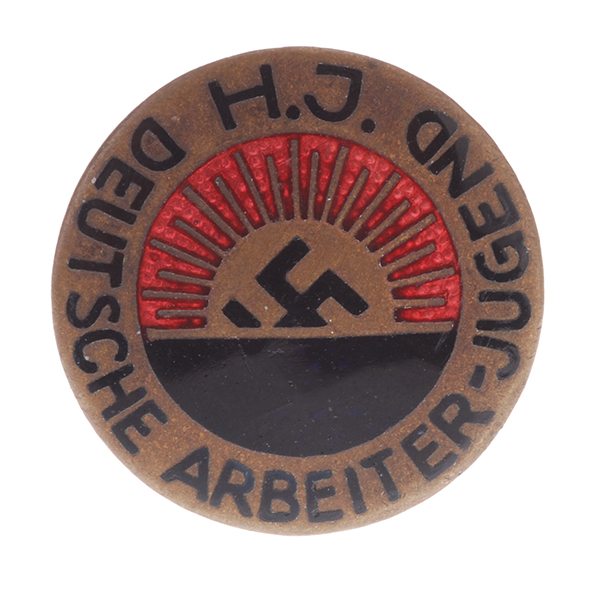 Hitler Jugend Membership Badge: H. J. Deutsche Arbeiter-Jugend. 22mm