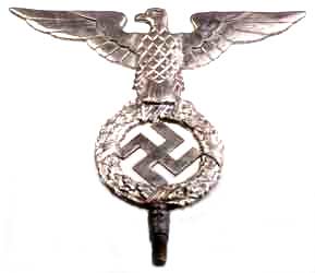 NSDAP Model 1927 Eagle Pole Top: Nickel plated brass eagle, first type, 20.5 cm wide, missing the pole cup and saucer spacer, almost all of the plating is present, moderate wear.