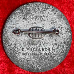 Ein Volk - Ein Reich - Ein Fuhrer Slogan: Zinc with black & silver finish, crimp set steel pin, RZM M9/11 C. Poellath Schrobenhausen, light wear.