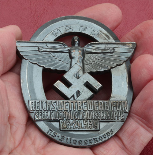 NSFK Reichswettbewerb fur Segelflugmodelle Wasserkuppe: Die struck, gun-metl grey anodized aluminum, 65 x 58 mm (2.6 x 2.25 inches); 27.62 gm, Brehmer Markneukirchen, superb detail, scarce, light wear.