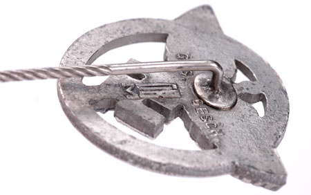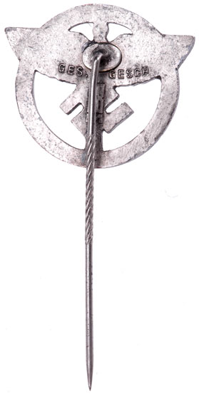 Förderer (Sponsor) Stickpin: Nickel plated tombac, 25x22 mm, knurled 45 mm pin, Ges. Gesch. GBM, the " F " on the obverse stands for "Förderend Mitglied" (contributing member), very light wear.