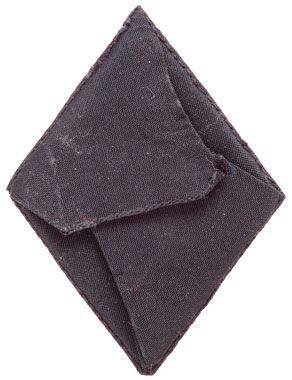 NSKK Driver Sleeve Diamond: Black rayon base sewn over felt pad, machine woven aluminum flatwire insignia, 40 mm sides, 64 mm high, sew down flaps on back, near mint, unissued.