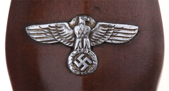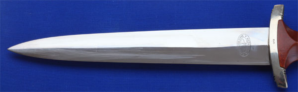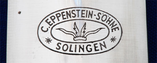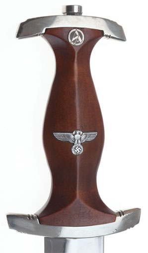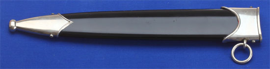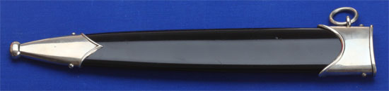 Early NSKK Dagger: maker "C. Eppenstein - Sohne, Solingen;" nickel fittings, black painted scabbard, beautiful clean bright blade with only some light runner marks, motto "Alles fur Deutschland," nickle SA button and eagle, overall excellent, very light wear.