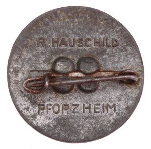 French Alsace-Lorraine Volksdeutsch - Opferring Elsass (Alsace Circle of Sacrifice): zinc, 23 mm, crimp set steel pin, R. Hauschild Pforzeim; for NSDAP supporters in the Lothringen region of France, scarce!! light wear.