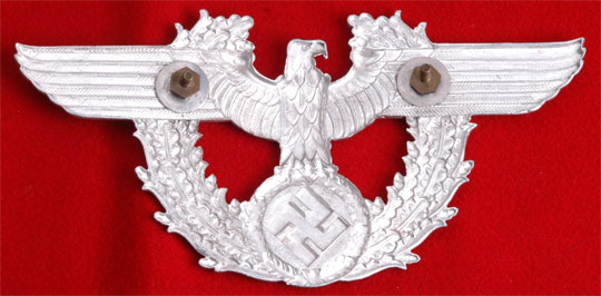 Tschako Adler: Aluminum, 16 x 8 cm, complete - brass posts, nuts, and aluminum washers, unissued, mint.