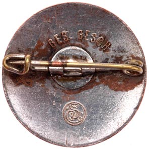 RDK: Reichsbund der Kinderreichen - The National League of Large Families : Gau Level, Red and Black enameled tombac pin, nickel plated, 26 mm, marked Ges. Gesch WS&C, moderate wear.