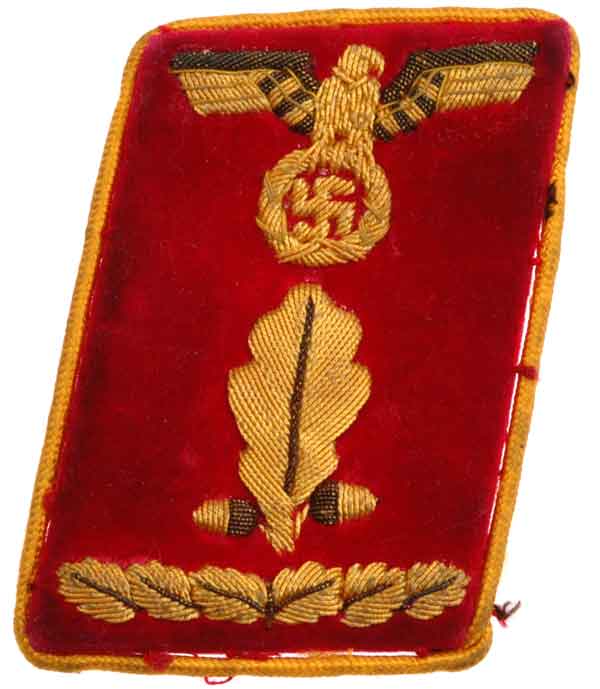 Reichs Oberabschnittsleiter: red velvet, bullion and cellion embroidered, buckram stiffener, gold piping, paper tag, unissued mint condition.