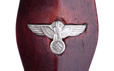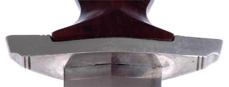 Supposedly the Heller Brothers was the only SA maker to stamp their name on the blade. I think Heller stamped their name on unmarked blades purchased from other makers to fill a contract because they could not make enough of their own blades which had an anchor inside a circle as their logo. This looks like a contract filler blade because it was slightly too thick to fit the crossguard. The company benchman slightly enlarged the opening and then applied a little bit of hard black filler material to seal it shut.