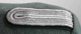The Police Greatcoat was issued to all ranks and was very similar to the German army greatcoat. The Police were divided into eight branches of service, each one having piping of their own truppenfarbe, (service color). The color of the Schutzpolizei des Reiches, (National Protection Police) was green. This coat is made of green wool with a brown wool collar having green piping. Twelve of the fourteen buttons are marked Assmann. The collar has a one hook closure with a wool tab beneath the eye. The inside of the coat has a grey rayon lining (no maker or size markings - looks large or x-large), bottom of lining is dirty, a left vest pocket, and a dagger hanger slot that opens directly under the left side pocket flap. No signs of mothing. Light to moderate wear.