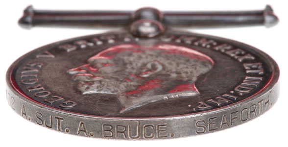 Solid Sterling Silver, 36 mm, 34.06 gm, edge stamped 8102 A. SJT. A. BRUCE. SEAFORTH.; beautiful even grey-blue toning, light wear.
