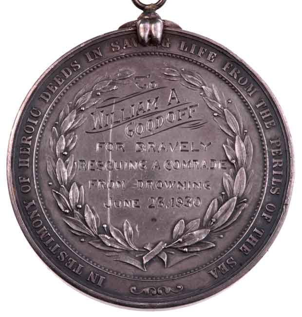 Silver Lifesaving Medal Awarded to Wm A. Goodoff, USMC June 23, 1930