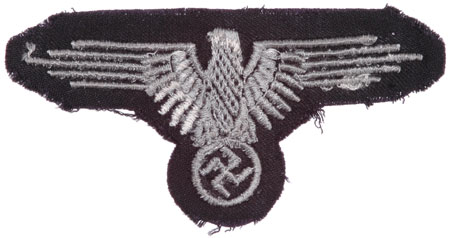 Black wool base, 90x45 mm silver-grey cotton machine embroidered eagle, based on the condition this probably came from Dachua, mint, unissued.