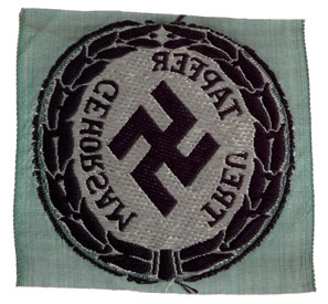 Treu Tapfer Gehorsam (Loyal Brave Steadfast): Black & light grey/green bevo on green rayon, 95 x 95 mm, mint unissued.