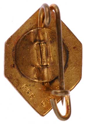 NSDAP Stenographer Membership Lapel Pin: Enameled tombac, 11 x 16 mm, marked "Ges. Gesch.," not many members, scarce, light to moderate wear.