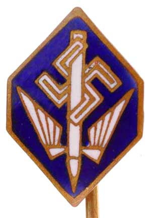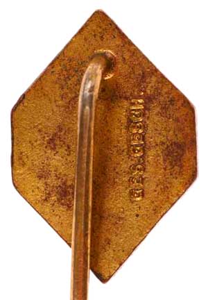 NSDAP Stenographer Membership Tie Pin: Enameled tombac, 11 x 16 mm, marked "Ges. Gesch.," 50 mm knurled pin, not many members, scarce, light to moderate wear.