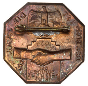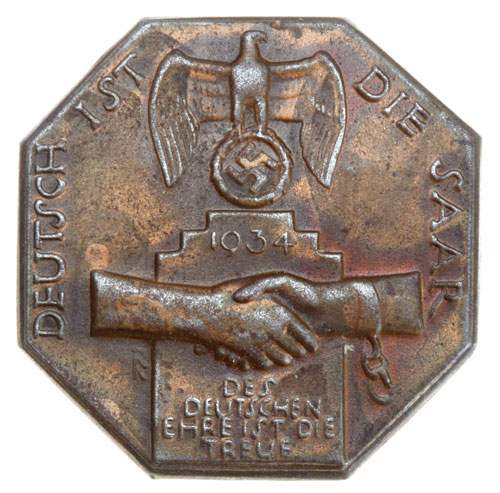 Deutsch Ist Die Saar: bronze plated steel, 38 mm, soldered brass pin, moderate wear.