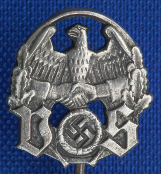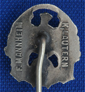 Nickel, 14 x 16 mm, 55 mm knurled pin, F. Mannheim Kaiserslautern, small membership, scarce, light wear.
